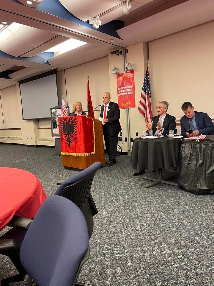 Kur u mblodhëm, pamë se ishim shqiptarë nga të gjitha trevat tona, vërtet Shqipëria natyrale, etnike, – vetëm në SHBA ndodh kjo, –  dhe mes nesh erdhi me bashkëshorten e tij dhe kongresmeni i shquar, me origjinë arbëreshe, Joe DioGuardi, që i kushtoi jetën çështjes shqiptare, çlirimit të Kosovës.