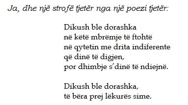 Ai bëri një pushim, si të donte të gjente përgjigjen më të mirë për pyetjen, dhe në fund shkundi shpatullat si nga njё lehtёsim nga njё peshё e rёndё dhe më tha: