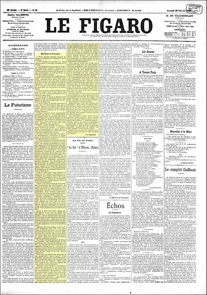 Manifesti i futurizmit – NGRINI KOKAT LART! – Nga Filippo Tommaso Marinetti Shqipëroi: Elida Buçpapaj