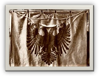 At Mati Prennushi dhe At Buon Gjeçaj tek Dedë Gjo’ Luli, me Flamurin e Gjergj Kastriotit Skënderbeut të palosun në gjoksin e tyre