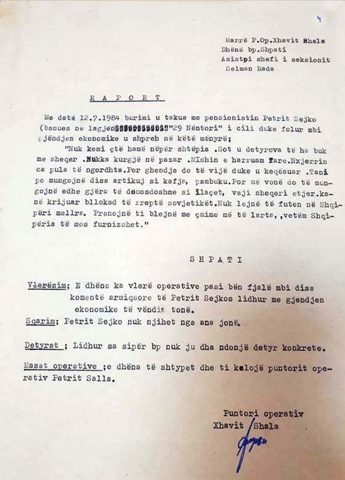 “Urdhëroj që agjentit ‘Trimi’ t’i jepet rrogë 8.000 lekë, ‘Gjoksit’ 3.500, ‘Besniku’ 2.500, kurse shpërblimi…”-Zbulohet dokumenti i i Sigurimit që fundos “Grupin e Teme Sejkos”