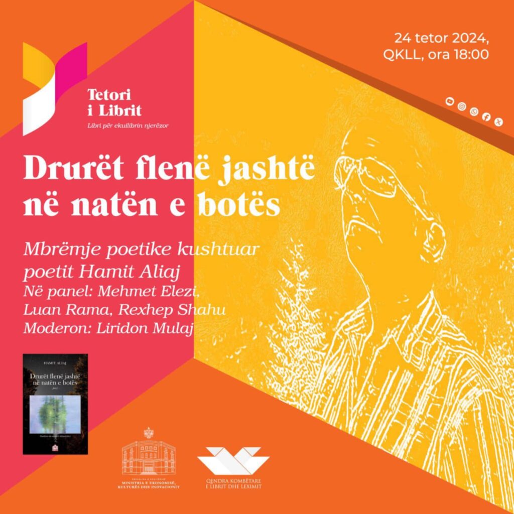 Mbrëmje poetike kushtuar poetit Hamit Aliaj “Drurët flenë jashtë në natën e botës” do të ketë në qendër vëllimin e tij të fundit me poezi me të njëjtin titull.