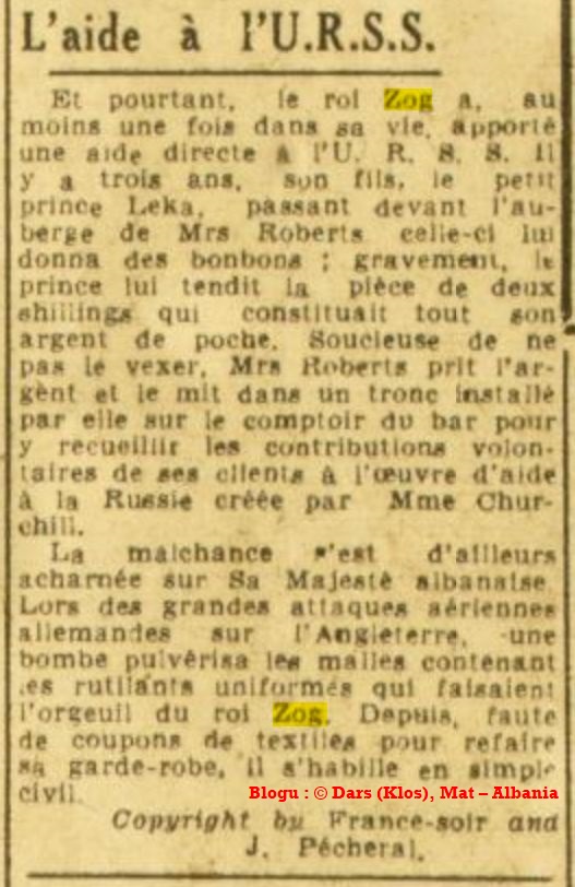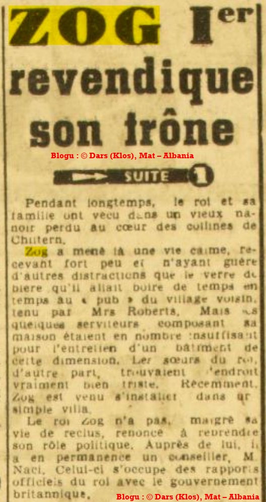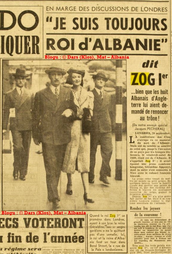 Mbreti Zog nga Anglia për France-soir (1945) : “Unë jam një pasardhës i një familje të madhe dhe jo një druvar, siç është thënë.”