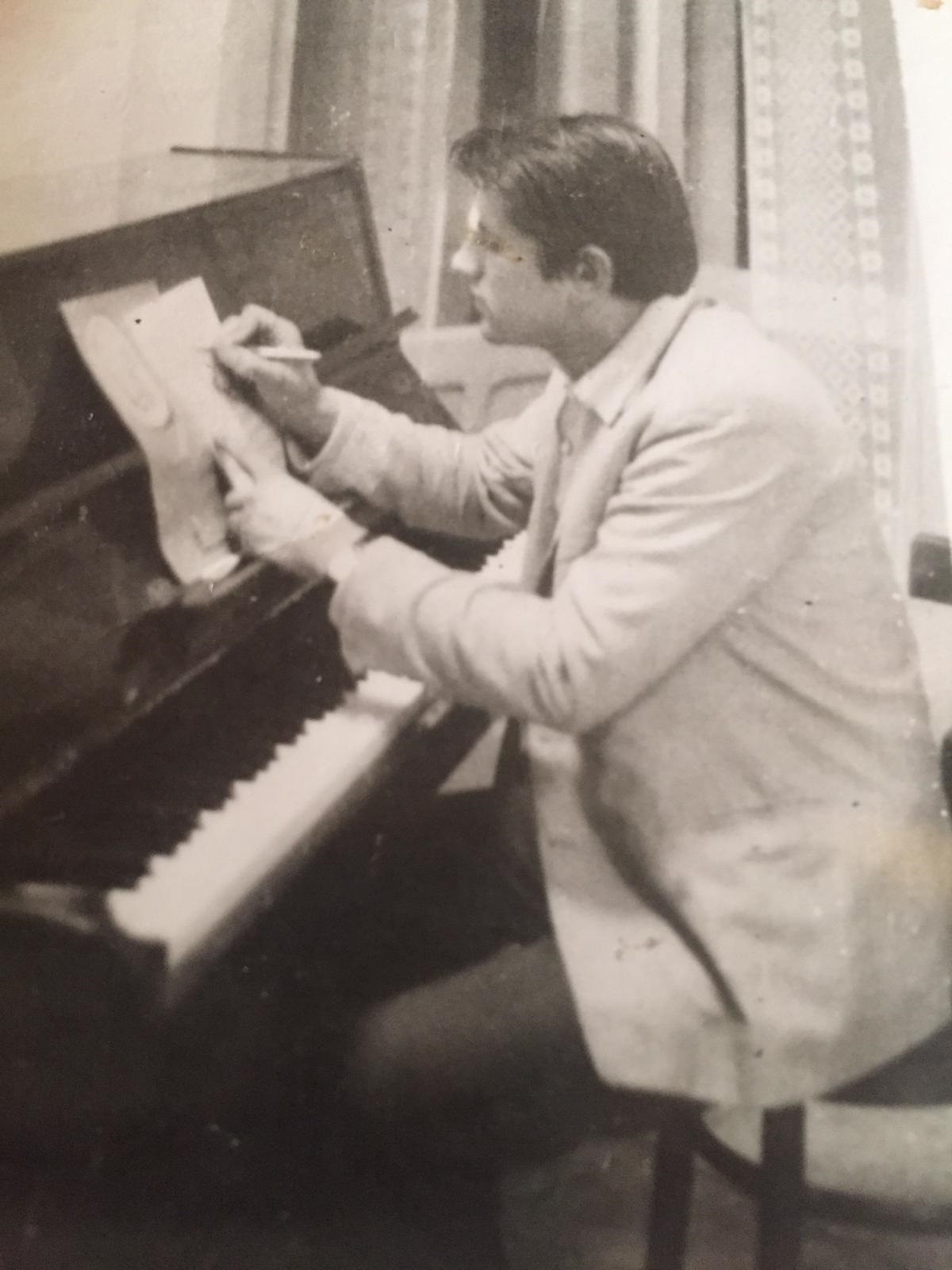 “Poezinë e parë e kam shkruar në vitin 1970, kur isha regjisor në Estradën e Tiranës dhe atëherë bëhej propagandë e madhe nga arti socialist kundër poezisë dekadente, që quhej poezi hermetike dhe kjo goditje ishte për perëndimorët.Dhe unë atëherë shkrova një tekst poezi hermetike për të goditur poezën hermetike si në karikaturë.