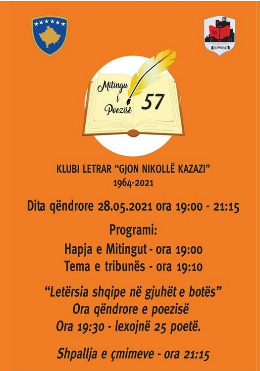 Me 28 Maj 2021 (sot) mbahet Mitingu i 57 i Poezisë në Gjakovë