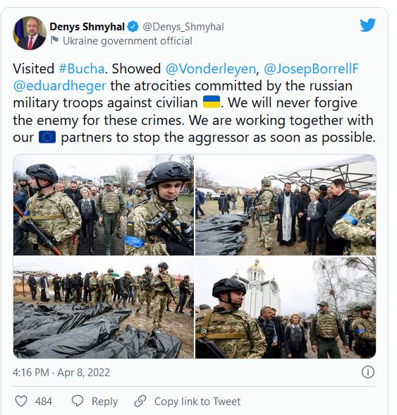 Me jelek antiplumb, Von der Leyen viziton vendin e masakrës në Bucha: S’do ia falim kurrë armikut këto krime!
