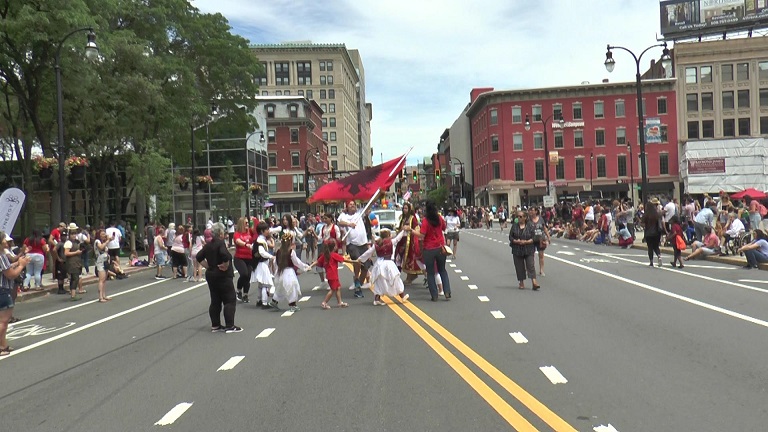 Valltarë dhe këngëtarë të rinj të grupit “Albanian Roots Dancers” me veshje tradicionale, kërcenin me pjësëmarrësit vallen e Tropojës, Labërisë dhe Çamërisë nën dritat vezulluese neon. Turistë nga të katër anët e globit, njujorkez dhe vizitor të tjerë ndalonin të mahnitur, bënin foto dhe video, disa madje pyesnin: “I cilit vendi është ky flamur dhe kjo festë që ka kaq shpirt dhe kaq shumë bukuri?”