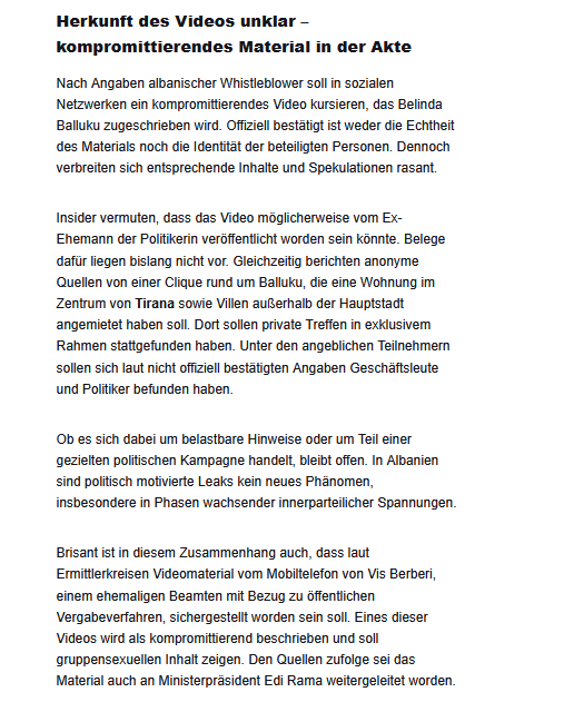 Media austriake exxtra24.at boton një artikull rreth një video skandal të supozuar seksi në grup ku është përfshirë zvkryeministrja Balluku