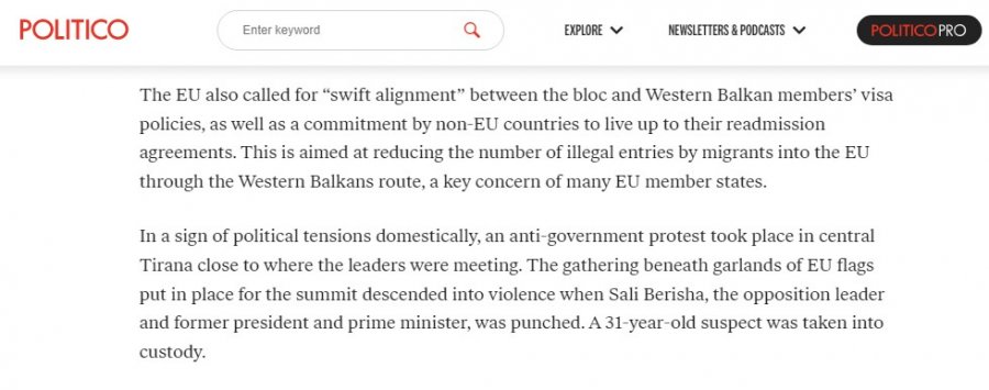 Media që raporton për BE: Tensione politike në Shqipëri! Lideri i opozitës, Sali Berisha goditet me grusht!