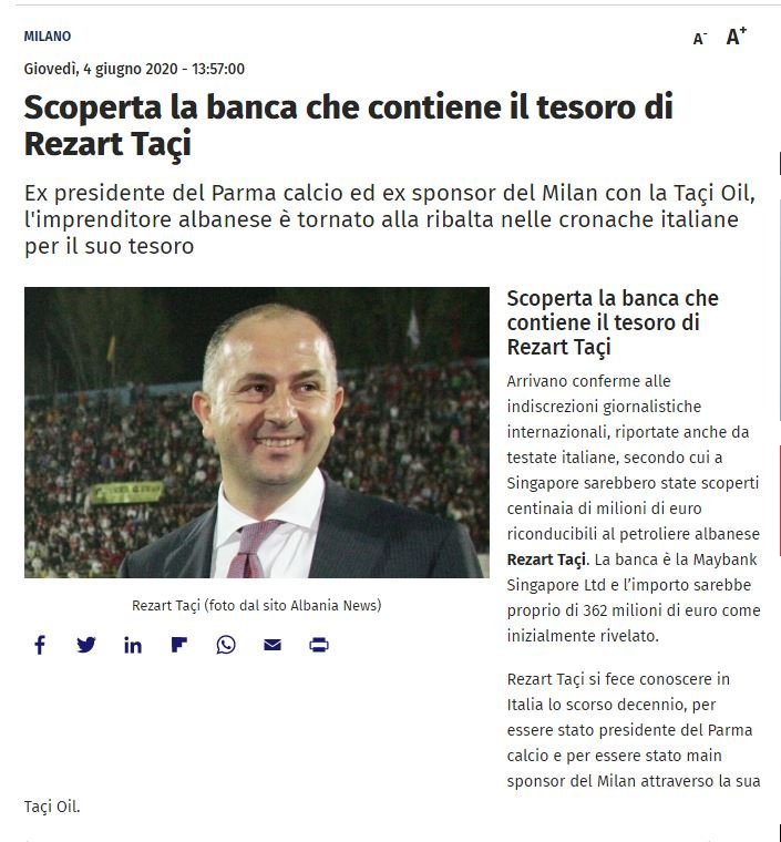 Mediat italiane: Rezart Taçi ka 362 milionë euro pasuri në një bankë në Singapor