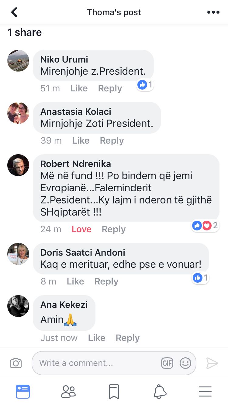 Ju i nderuemi Robert, nuk përfaqsoni nji komb shqyptar në ndjenjat e tua progreke – antishqyptare! Nuk asht qytetnim europjan me i dhan pasaportën nji të huajit qi për 25 vjet vetun ka rrënue demokracin e nji kombi bashkë me liderët e Tiranës!