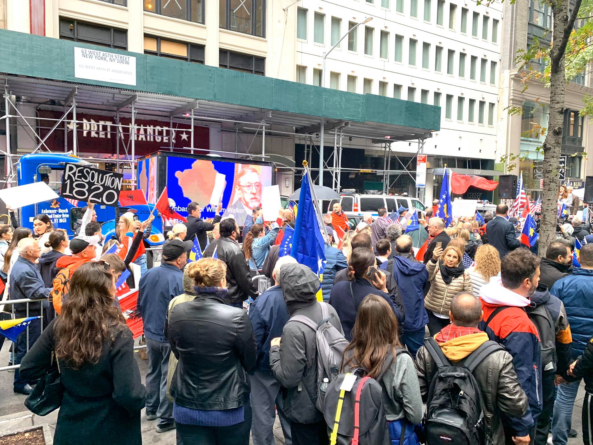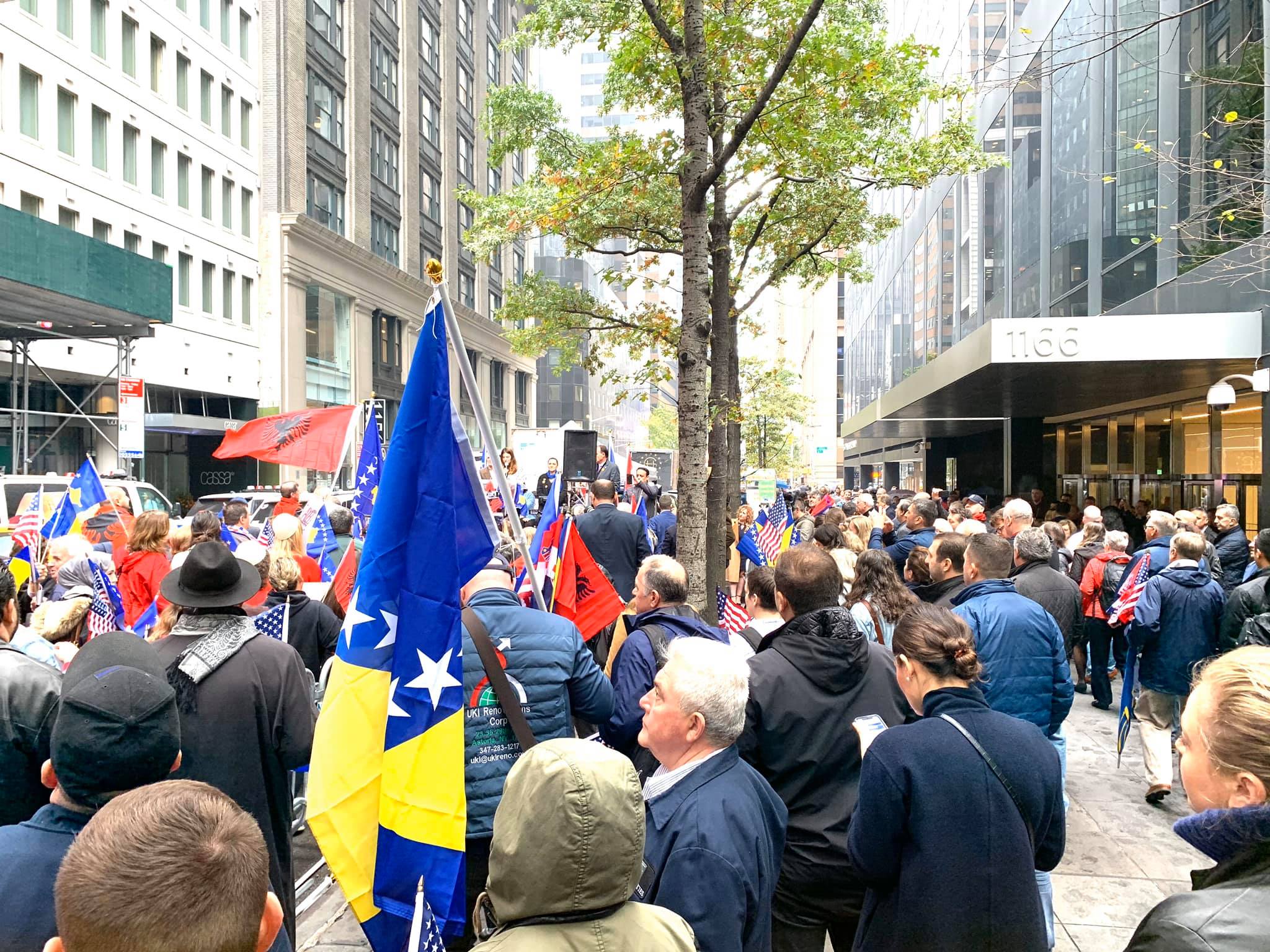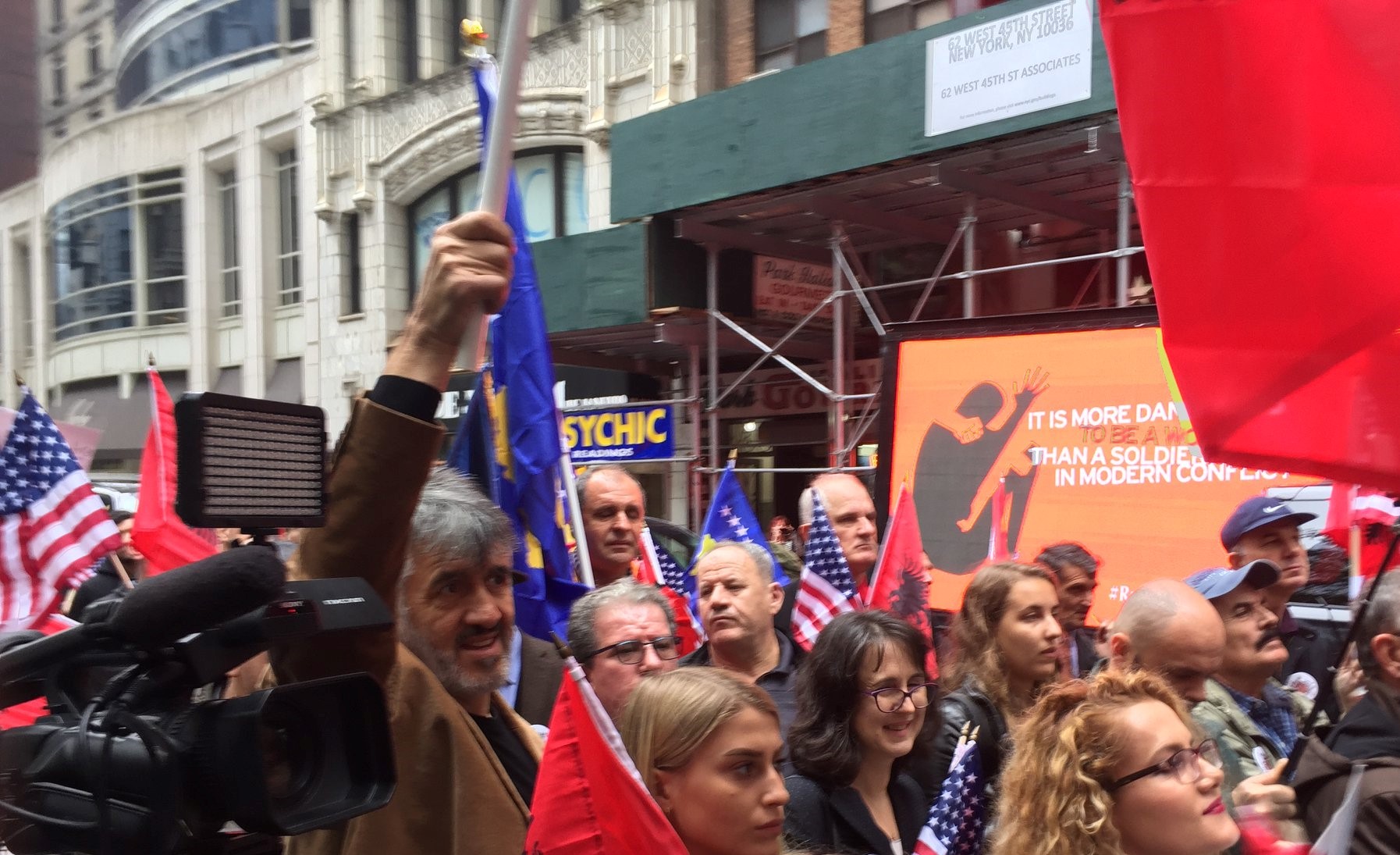 Për një orë të tërë Times Square në qendër të saj u mbush me flamujt kuq e zi dhe bë një “Shqipëri e Vogël” në zemër të Nju Jorkut. Flamujt kuq e zi valëviteshin krah për krah me Stars and Stripes si simbol i dashurisë së dyfishtë për vendlindjen dhe për Amerikën që na strehoi. Atmosfer festive, dhe britmat “Jam krenar me qenë Shqiptar!” dhe Albania! Albania! “USA! USA!”, u bashkuan në një kor të vetëm në Times Square.