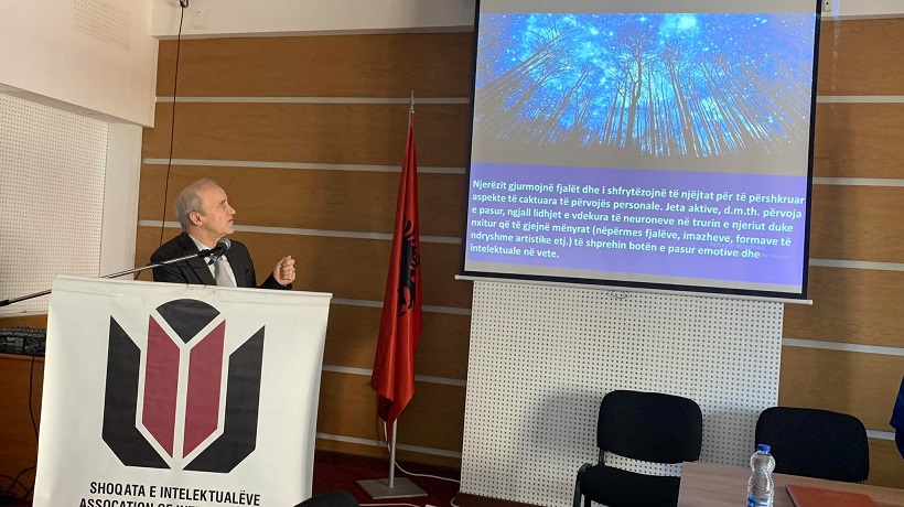 Në ligjëratën e tij Dr.Iljazi shpalosi të dhëna nga disa vende të ndryshme të botës e edhe të vendit tonë lidhur me të qenurit intelektual ,si trajtohet ai në vendin tonë,sa ata kontribuojnë në shoqëri ,etj.Ai ka theksuar se ne si njerëz shfrytëzojmë 1% ose më pak se 1% të kapacitetit tonë intelektual gjë që është tejet brengosëse.,,Kjo ndodh për shkak të sugjestioneve negative që ne kemi ,si nga ana e mësimdhënsesve ose prindërve,pastaj mediave ose edhe gjithë shoqërisë sonë.Na ka rënë shpesh të dëgjojmë,vjen djali në shtëpi e I thotë babai ,,hajt more se s,je për shkollë,hyjë në zanat”,dmth menjëherë ia bllokon neuronet.Prandaj ne duhet të jemi përgjegjës dhe të marrim iniciativa e të rrisim breza të shëndoshë .Posaqërisht intelektualët duhet të jenë tepër të vëmendshëm karshi fenomeneve negative e të reagojnë në situata kur kërkohet nga ata.Duhet të dinë edhe një gjë se janë vet intelektualët ata që e kanë përgjegjësinë kryesore në atë se cfarë drejtimi dfo të marrë shoqëria jonë vitet në vijim.Bile ne duhet ta kujtojmë e ta përsërisim shpesh thënien e Ismail Qemalit,,një fëmijë që fle rritet e një komb që fle vdes”,ka thënë pos tjerash Dr.Iljazi.Ai po ashtu ka prezantuar fakte e të dhëna nga shkencëtarë të njohur botërorë,studimet e të cilëve janë shumë aktuale dhe përkasin me realitetin në vendin tonë.