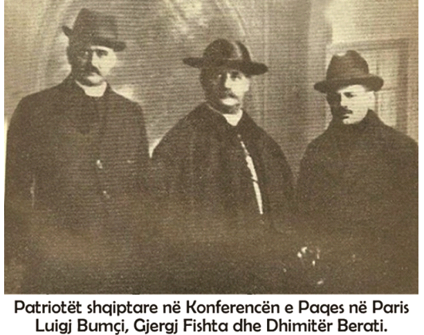 At Gjergj Fishta në qershor 1919 me temën– “Shqiptarët e të drejtat e tyne”, në Konferencën e Paqes, Paris