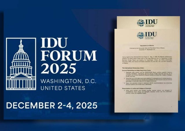 Unioni Ndërkombëtar Demokrat (IDU) miratoi një rezolutë të posaçme në mbledhjen e tij ekzekutive të zhvilluar një ditë më parë në Uashington, ku trajtoi situatën e rëndë politike në Shqipëri. Dokumenti zyrtar përmban një sërë rekomandimesh të forta të partnerëve perëndimorë për gjendjen në Shqipëri dhe shpreh mbështetje të pakushtëzuar për Partinë Demokratike dhe opozitën shqiptare.