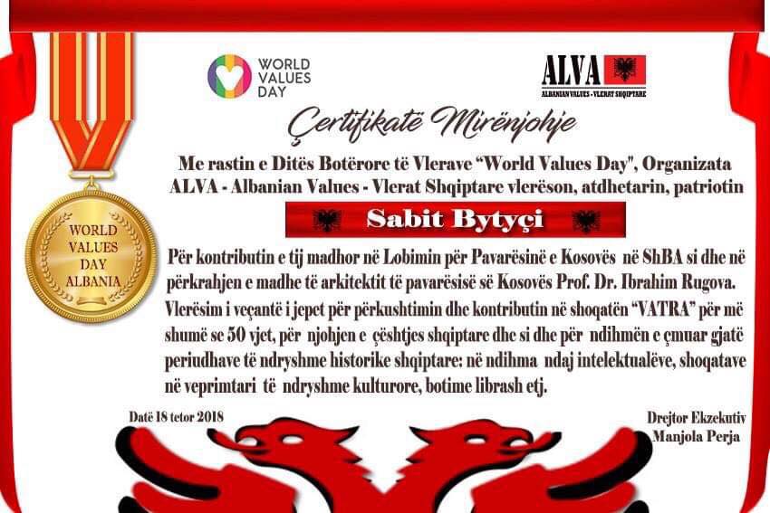 Urime dhe suksese grupit te vatraneve! Dhashte Zoti paqe ne Vater dhe Vatra te kthehet ne binare kushtetues dhe ne misionin e saj perbashkues dhe mbrojtes te interesave shqiptare ne USA.”, përfundon Valentin Lumaj.