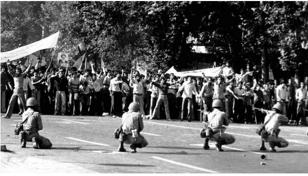Ushtria e Shahut, gati për të hapur zjarr ndaj demonstruesve: një imazh që daton në shtator 1978, kur monarkia u përpoq të shtypte kryengritjen me armë (Wikimedia / domeni publik)