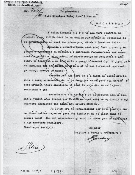 Respekt per kët dekument shumë të rendsishem për përpjekjet e përhapjen e Arsimit në Zonën e Nikaj – Merturit