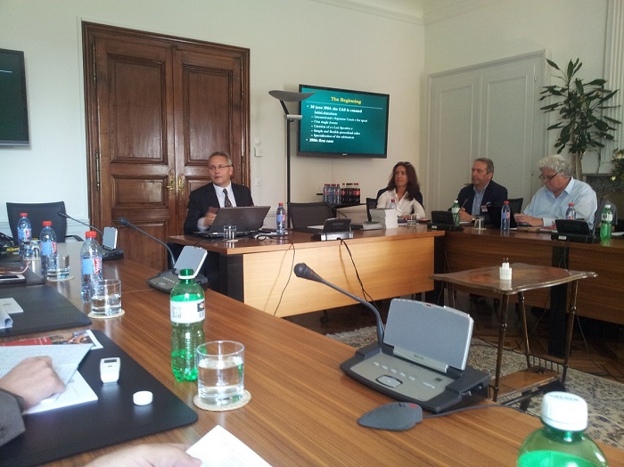 Nga një mjedis i supersofistikuar dhe modern i Selisë së Sporteve Ndërkombëtare, ndodhemi para Château de Béthusy, një kështjelle jashtëzakonisht e bukur dhe për minuta të tëra duam vetëm të fiksojmë gjithçka në kamerat dhe aparatet tona. Kush jeton në këtë kështjellë ? Ndonjë supermilioner, ndonjë guru, sheik apo yll Hollywood-i ? Jo, ndodhemi përballë Gjykatës Ndërkombëtare të Arbitrazhit për Sportet, Court of Arbitration for Sport, e konsideruar ndryshe si Haga e sporteve ndërkombëtare. Selia qëndore e saj është në Lozanë, ndërsa gjykatat i ka në Lozanë, New York dhe Sideny. Këtej kalojnë proceset e atyre që cënojnë Kodin Botëror të Anti-Dopingut. Mikpritës është zotëri Matthieu Reeb, Sekretar i Përgjithshëm. Biseda zhvillohet në sallën ku mbahen seancat dëgjimore mes palëve ankuese dhe palëve të paditura.