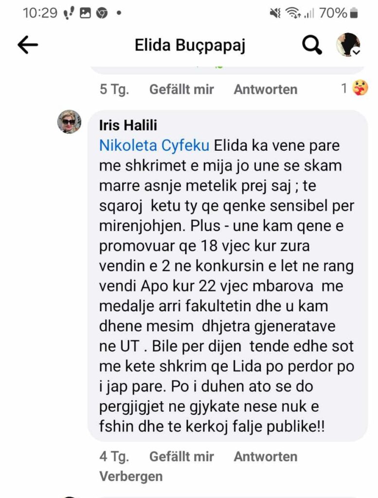 Nëse është gënjeshtare kjo zonjë që më fyen, duke cënuar në integritetin tim profesional e moral dhe duke më kërcënuar publikisht me padi në gjykatë për manipulim!