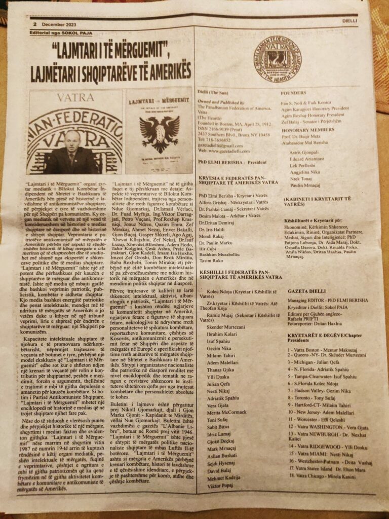 Numri i dhjetorit të Diellit 2023, i cili ka dalë në muajin Janar, ku mund të shihet qartë kryesia e Vatrës