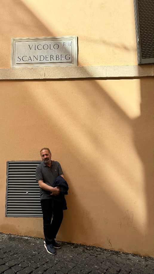 – Është rruga e parë në Romë që i vihet emri i një të huaji, – thashë dhe dolëm në atë që quhet edhe sot “Palazzo Scanderbeg”, është shtëpia autentike e Gjergj Kastrioti – Skenderbeut, ja dhe afresku mbi portë me portretin e Skenderbeut dhe mbishkrime, jo vetëm sugjestionuese për ne, por dhe me vlera për historinë, – kisha shkruar dikur.
