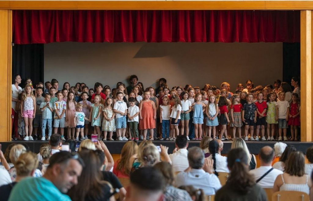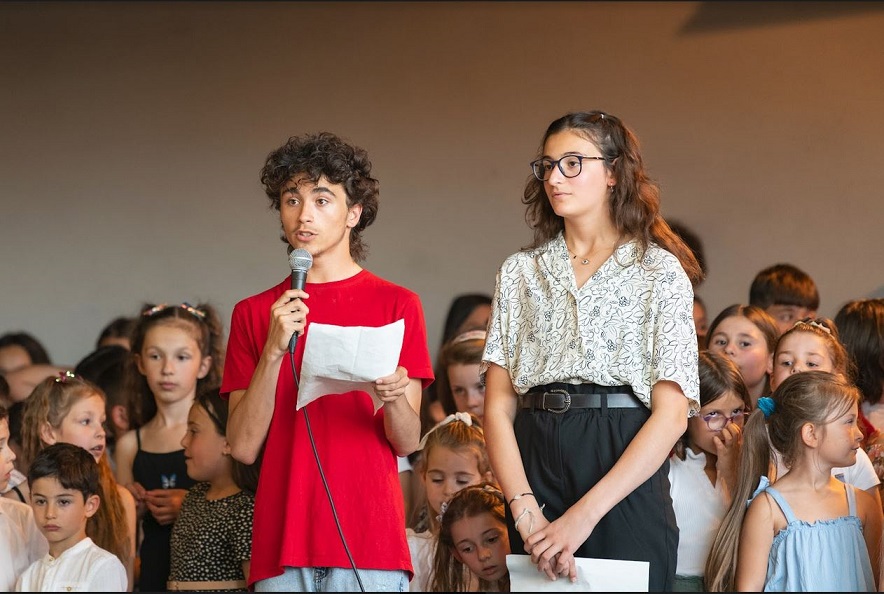 Më pas, skena iu dha nxënësve të shkollës shqipe të Gjenevës. Himni i Flamurit, i interpretuar prej tyre, emocionoi të pranishmit. Nga 260 fëmijë sa ndjekin mësimin plotësues të gjuhës shqipe në Gjenevë, rreth 40 prej tyre ishin pjesë e programit. Ata kënduan e recituan për Shqipërinë, për flamurin, për atdheun – duke dëshmuar se trashëgimia shpirtërore mbetet e gjallë edhe larg vendlindjes. Programi shkollor u prezantua nga nxënëset e mrekullueshme Mjalta Kryeziu dhe Hareja Haxhiu. Pjesa shkollore u përgatit nga mësueset: Lumnije Emini, Brikena Osmani, Hana Bilalli, Fatime Bllaca dhe Antigona Haxhiu. Për punën e tyre të palodhur, meritojnë mirënjohje të veçantë.