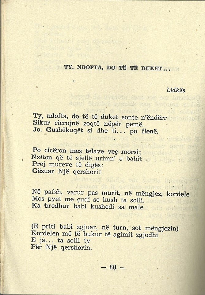 Ai bëri një pushim, si të donte të gjente përgjigjen më të mirë për pyetjen, dhe në fund shkundi shpatullat si nga njё lehtёsim nga njё peshё e rёndё dhe më tha: