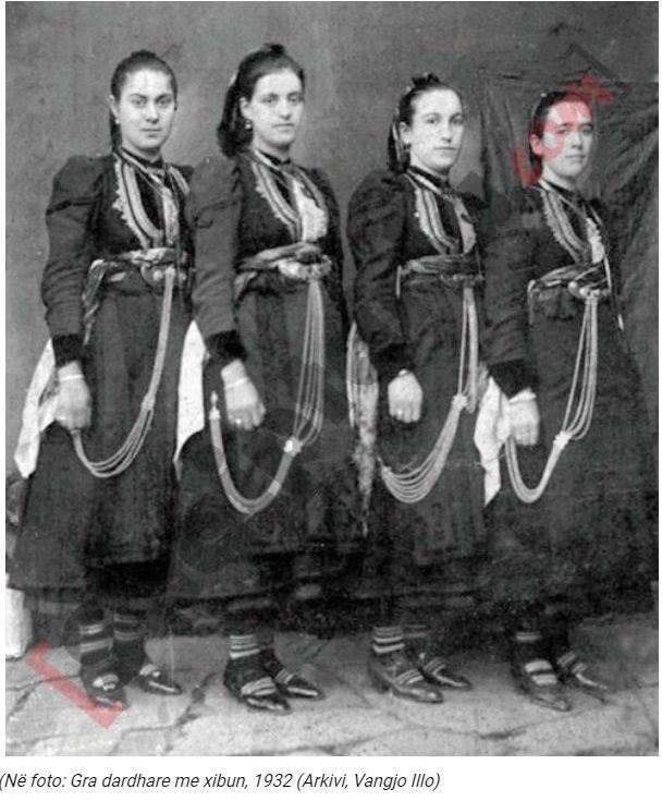 Gratë dardhare çdo të kremte mbanin xibunin, veshjen tradicionale të fshatit (edhe në pajë merrnin një të tillë), kurse ditën e martesës visheshin me fustan të bardhë, gjithashtu kishin edhe rrobat që ua sillnin nga mërgimi, por xibuni ishte veshja e preferuar e tyre. Xibuni qepej në Dardhë, përdorej nga pak edhe në fshatrat Sinicë dhe Qytezë. Sipas Sotir Laços dhe Sotir Panit koleksionistë të vjetër, xibuni kishte nisur të preferohej që prej shekullit XIX. Ishte veshja e mirënjohur e vendit. Vallja dardhare nuk mund të kërcehej prej grave pa u veshur me xibun, kurse burrat parapëlqenin veshjen europiane. Gratë dardhare me xibun u fotografuan nga Thimi Raci me një kujdes tepër të veçantë artistik. Për herë të parë në vitin 1931 u fotografuan 10 çifte. Ata që u fotografuan erdhën enkas nga Amerika, të cilët ishin fotografuar edhe në studio prestigjioze. Për realizimin e fotografimit ishte bërë prerja (caktimi) i ditës, përzgjedhja e vendit caktimi i orës, por caktimi i veshjes ishte më i vështiri sepse “ata të Amerikës”, parapëlqenin kostumet europiane, kurse fshati i tyre kishte një veshje të tijën karakteristike për meshkujt, që quhej “mandio”. edhe vallet kërceheshin nga valltaret e veshura me xibun, veshjen tradicionale të fshatit (dhe në pajë e mernin nga një të tillë), ndonëse ditën e martesës e ndërronin me fustanin e bardhë.