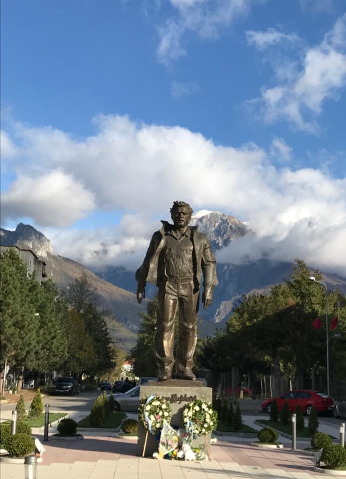 -Adem Jashari, Zoi, ishte një shqiptar që luftoi kundër serbëve. Dhe serbët e vranë atë me gjithë familjen e tij. Ia bënë shtëpinë shoshë me plumba kaq të mëdhenj (tregoj pëllëmbën e dorës). Do të vemi një ditë te shtëpia e tij se i kanë lënë muret gjithë vrima plumbash. Është një kompleks i madh memorial në Prekaz…