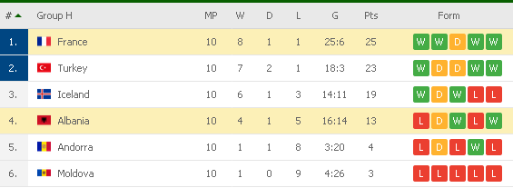 Ajo barazoi 1:1 me Zvicrën në ndeshjen e fundit në grup në nëntor, duke grumbulluar në fund 11 pikë në vendin e dytë, mjaftushëm për ta kapur plajofin, pasi Zvica shkoi direkt.