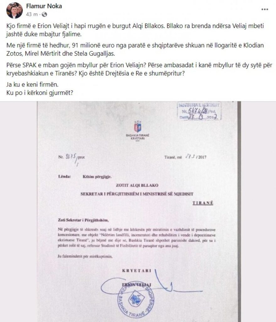 Noka: Kjo firmë e Veliajt çoi në burg Bllakon dhe mbushi llogaritë e Zotos dhe Mërtirit me 91 milionë euro