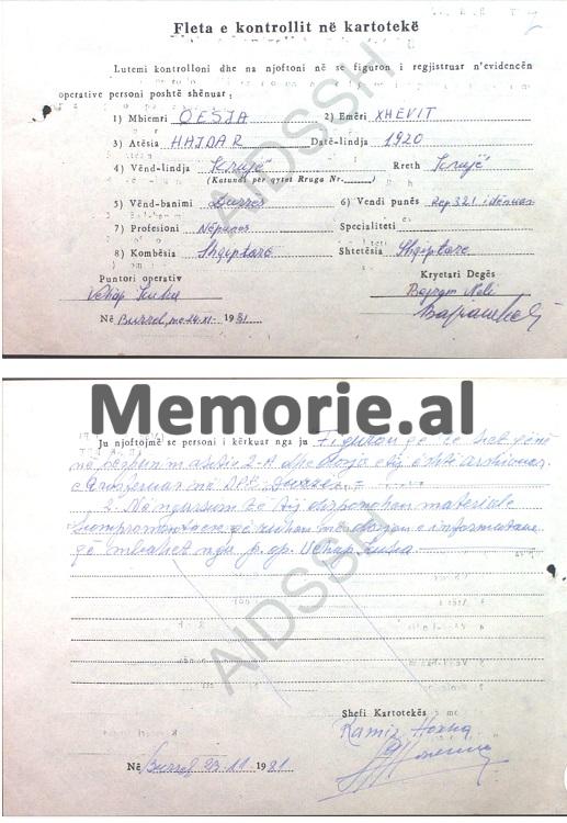 Në këtë rast, nuk mund të mos përmend, kontributin që keni dhënë juve në këtë drejtim. Të dhënat tuaja që nga viti 1951 e deri ditën që jeni kthyer në Atdhe, mbi veprimtarinë e Zbulimit Amerikan dhe Grek e kanalet që kanë përdorur që nga Konispoli deri në Korçë, si dhe për personat në shërbim të këtyre zbulimeve, si; Haki Rushiti, Rushit Plaku, Rasim Aliu, Ramadan Fehimi, Spiro Zharkalliu, Skënder Bllacin, Gaqo Mujon, Jani Kovaçin, Javer Alikon, Xhafer Aliun, Xhemal Hoxhën, Shefqet Sallarin, etj., ndihmuan më vonë në zbulimin dhe goditjen e armiqve, sikurse janë: Teme Sejko, Tahir Demi, Abdyl Resuli, Hajri Mane, Nasho Gërxho, etj.