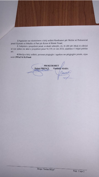 Nji ceshtje ne hetim nuk behet publike eshte e denueshme.