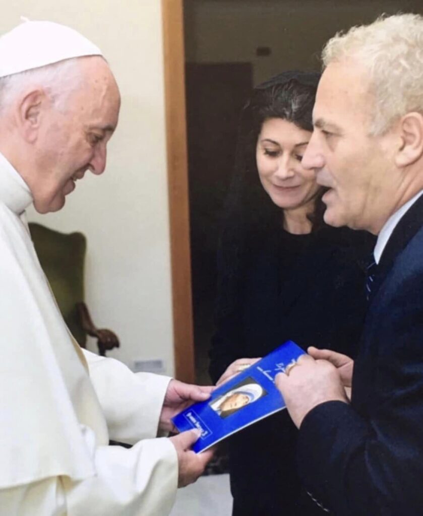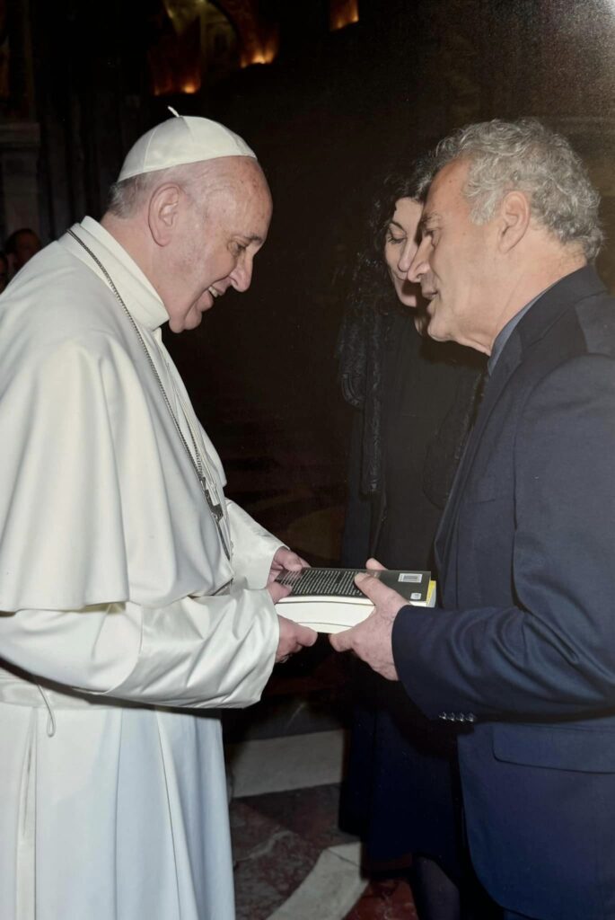 Dua të kujtoj takimet tona me Papa Françeskun, buzëqeshjen e tij plot dritë kur i kemi dhuruar librat e mi, poezitë dhe romanet në italisht si dhe një ese për Shenjten Nënë Tereza, “Le piaghe non hanno patria” (Plagët nuk kanë atdhe), i bëri përshtypje titulli, vështroi nga Eda ime, ndoshta donte te gjente diçka nga Nënë Tereza në një bashatdhetare të saj, por mua më ka mbetur në mendje kujdesi dhe dhembshuria se si ai mori librat, gishtat sikur i kumbonin, sikur të kishte një lirë të padukshme diku pranë…