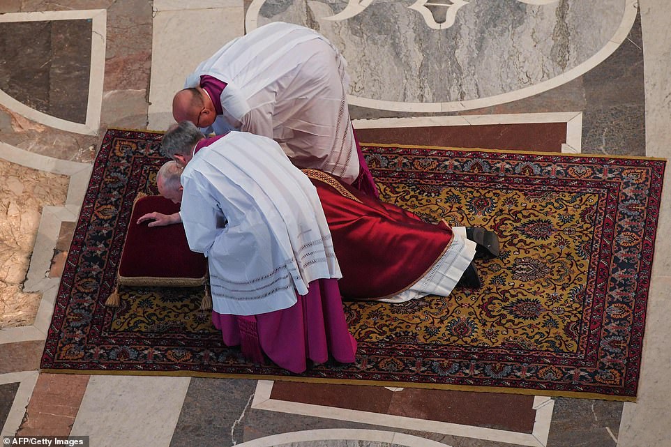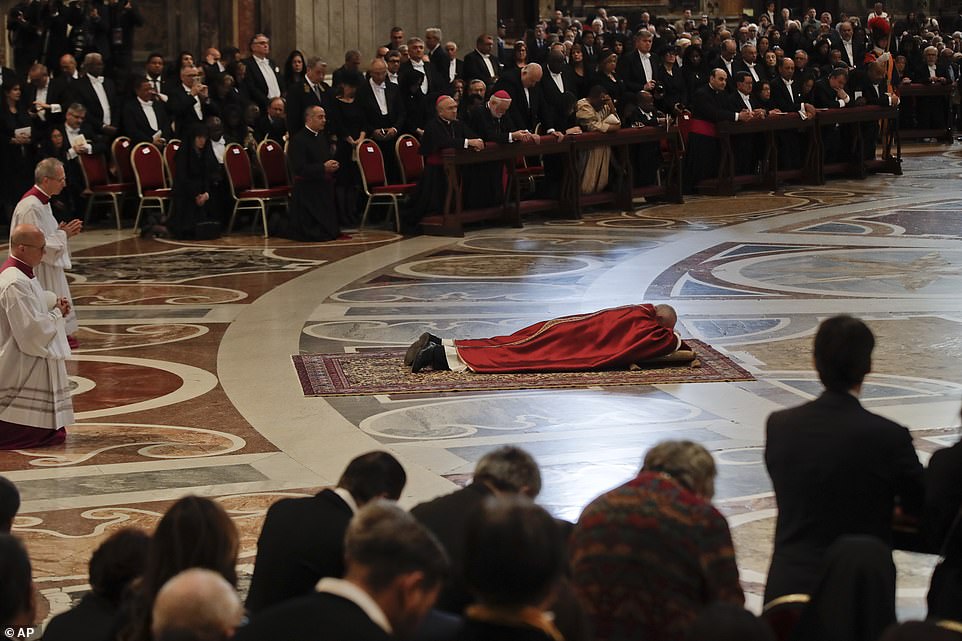 Papa Françesku i shtrirë në altar (fotot)
