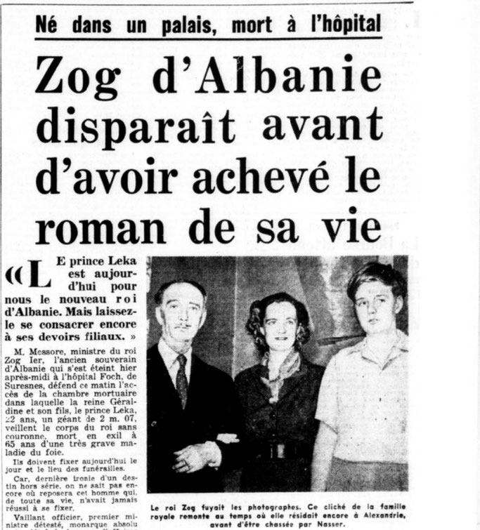 Paris-presse (1961)- “Jeta ime është një roman aventuresk. Dua ta shkruaj para se të vdes.” – Mbreti Zog i Shqipërisë ndërroi jetë para se të mbaronte romanin e jetës së tij.