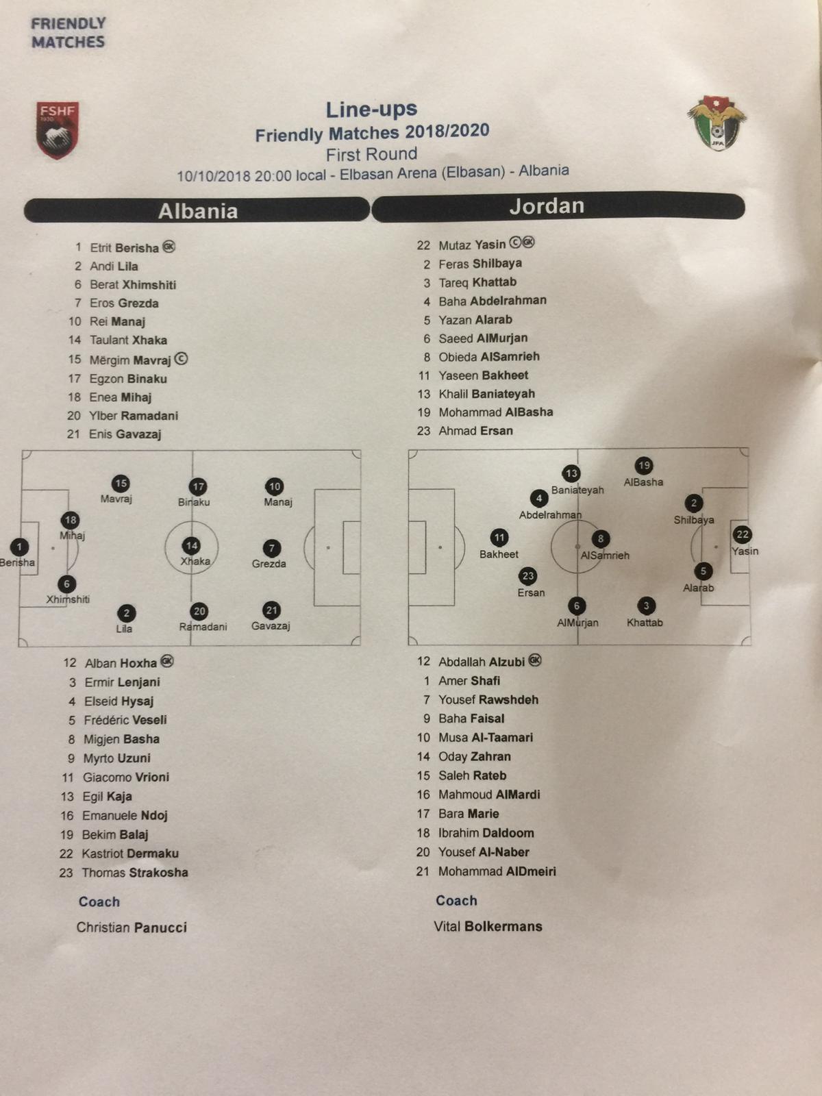 Pas pak përballja Shqipëri-Jordani, ja formacionet zyrtare