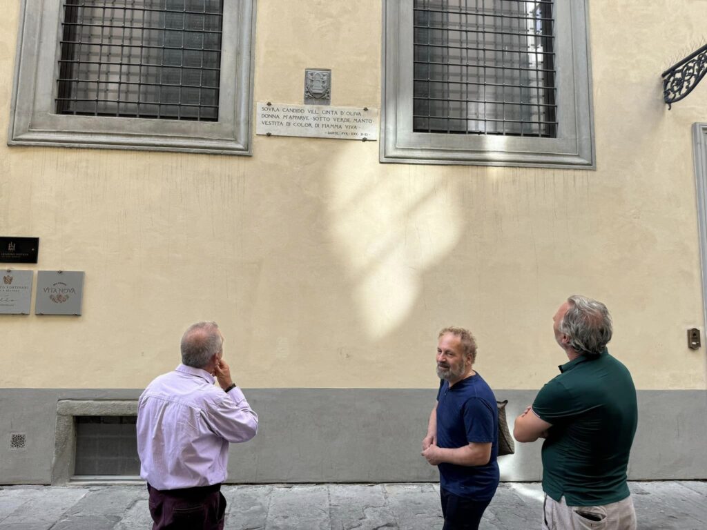 Artur Spanjolli dhe së bashku u futëm në Duomon e famshme, ndezëm qirinj dhe dolëm në kërkim të Dantes, shkuam te muret e tij, ku janë dhe vargjet të tij, busti, ndërsa në gurët e rrugës është dhe një gur me profilin e tij, thonë se e ka gdhendur Mikelanxhelo.