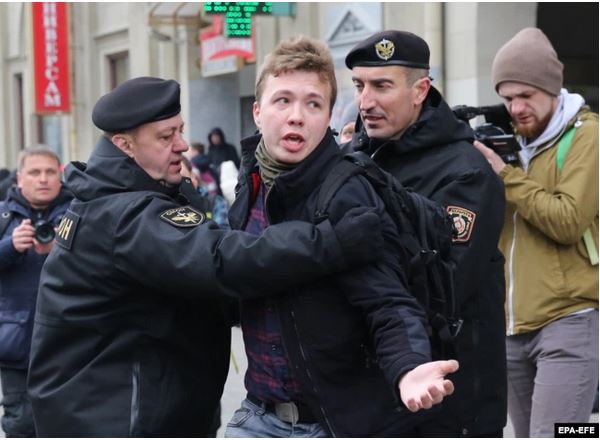 Kur aeroplani është ulur, policia ka ndaluar Raman Pratasevich, 26-vjeç, aktivist opozitar dhe gazetar, i cili përballet me akuza në Bjellorusi, për të cilat mund të mbetet 15 vjet në burg.