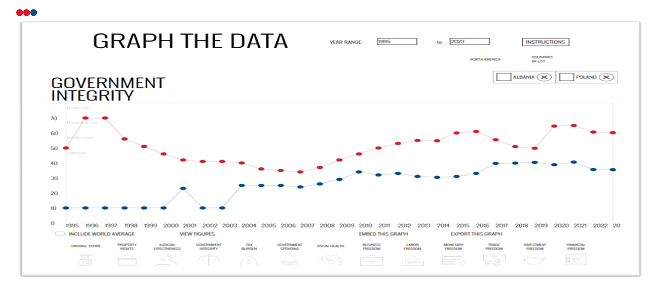 1- Integriteti i qeverisë, politikat ekonomike dhe suportimi i invesitorëve vendas dhe të huaj (referencë: Grafiku – Government Integrity Poland -vs- Albanian)