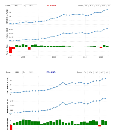 Natyrisht ata janë aktivë ndaj Shqipërisë me investime dhe ide. Na duket me interes ku shkrim, ku shtrohen disa çështje ekonomike, pa retorikë, por me shifra dhe krahësimet me një tjetër vend lindor, që vuajti sisitemin totalitar komunist si Polonia dhe ka progres të ndjeshëm parësor ekonomik, shërbejnë dhe si udhëzime për rimëkëmbje të ekonomisë shqiptare.