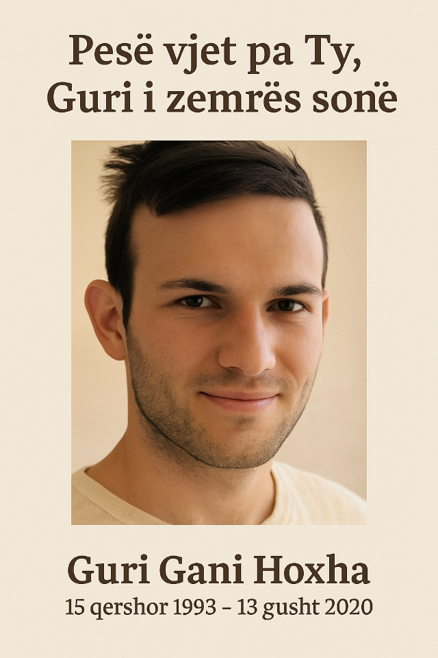 Pesë vjet pa zërin tënd, Guri Gani Hoxha, pa buzëqeshjen tënde, pa praninë tënde që na mbushte shpirtin me ngrohtësi.