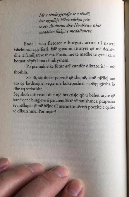 – Mund të jetë një shkrimtar dhe një mik, po ti ke një fyt të coptuar. Po qe se do të diskutosh me të, më vonë do të jesh i ngjirur.