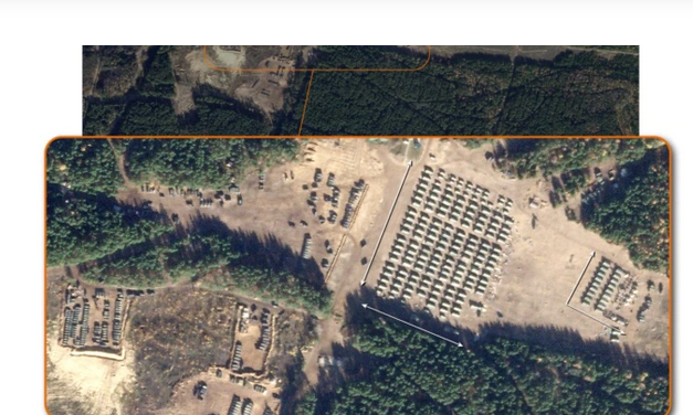 Imazhet satelitore të marra nga Radio Evropa e Lirë tregojnë se Rusia ka ngritur më shumë se 300 tenda në tri vende gjatë muajit të kaluar për të strehuar përkohësisht ushtarë në treiterrene stërvitore në Bjellorusi, duke përfshirë 190 tenda në Abuz-Lyasnouski.
