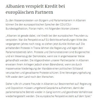 Por a nuk është Nord Stream një simbolikë e faktit që ju, jo gjithmonë i kushtoni vemendjen e duhur interesave të partnerëve më të vegjel të BE-së, që i përshkruat më parë? Për mua personalisht, dhe shumë të tjerë, Nord Stream 2 nuk është një projekt që e kemi për zemër. Por vendimmarrja e rëndësishme, në zemër të projektit, është marrë në të shkuarën. Nuk është e mundur që projekti thjesht të kthehet mbrapsht. Gjithashtu kemi interesa ekonomike shumë legjitime kur bëhet fjalë për furnizimin me energji. Konsultimet në Bruksel kanë treguar së asnjë nuk është i fiksuar që cështja të zgjidhet sipas mënyrës së tij. Fakti është që të mbajmë në vëmendje interesat e fqinjeve tanë evropianë, dhe zbatimi i këtyre interesave ka qenë dhe do vijojë të jetë një konstante e politikës së jashtme gjermane.