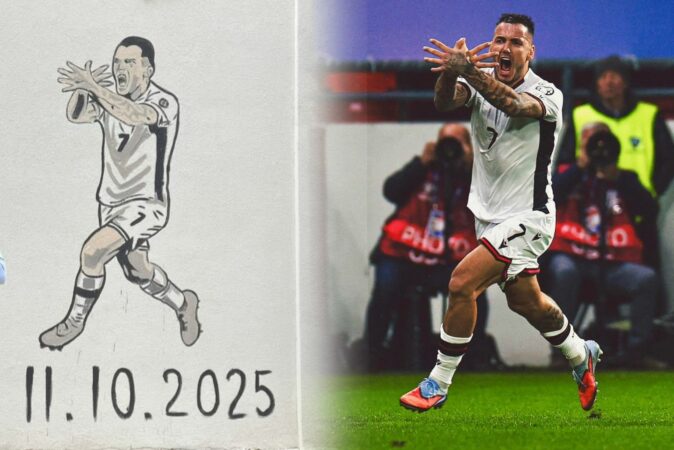 Pas golit historik ndaj Serbisë që i dha fitoren Shqipërisë në Leskovac, Rey Manaj është përjetësuar në Mitrovicë me një grafit në mur.