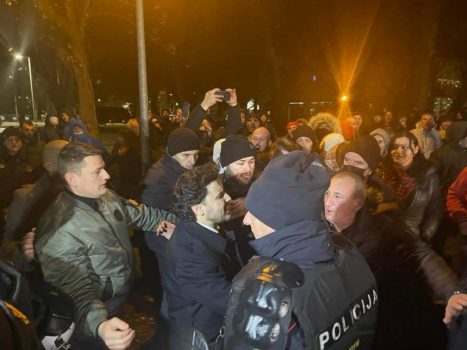 Siç raporton Vijesti.me, njëri nga të grumbulluarit ka bërtitur: “Shqiptarët nuk do të na komandojnë”. Por, kundër një deklarate të tillë kanë reaguar disa protestues të tjerë.