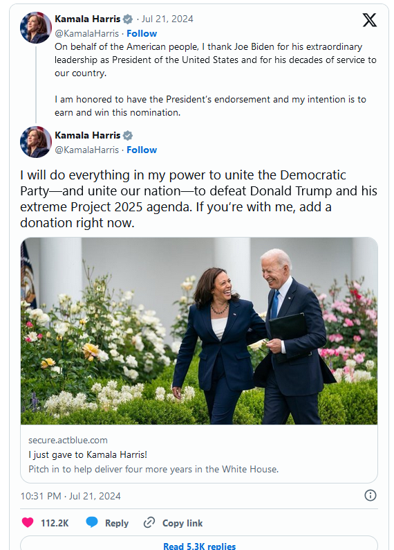 Presidenti Joe Biden këmbëngul se vetëm “Zoti i Plotfuqishëm” mund ta bindë që të tërhiqet nga gara për Shtëpinë e Bardhë. Por në rast se do të ndryshonte mendje, nënpresidentja Kamala Harris duket se është e pozicionuar mirë për ta zëvendësuar atë.