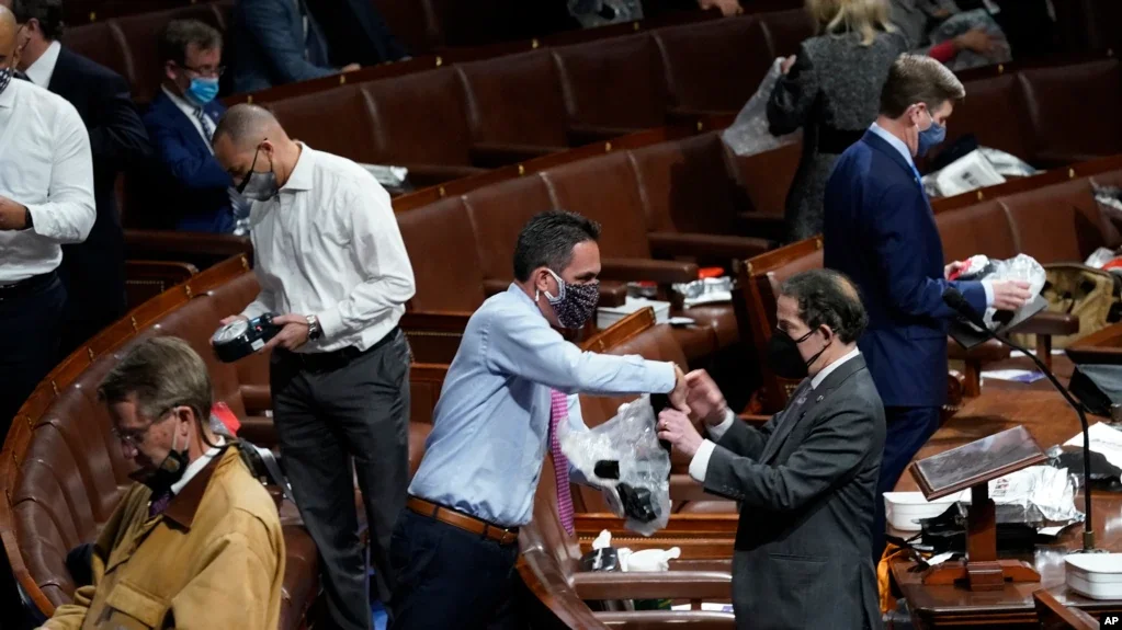 Zonja Pelosi u evakuua nga kompleksi ndërsa stafi i saj u fsheh në zyrat e saj. Punonjësit e rendit, të mbingarkuar nga turma, në gjendje paniku thonë “e humbëm kontrollin”. Një oficer shihet duke u shtypur nga turma dhe prokurorët thanë se një tjetër pësoi një goditje në zemër. Më pas një prej tyre humbi jetën.
